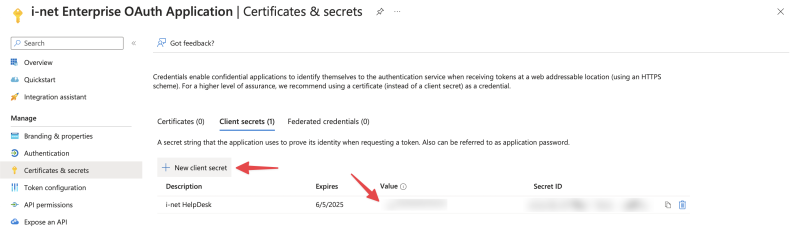 New client secretin the Client secrets tab -